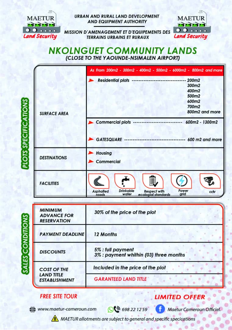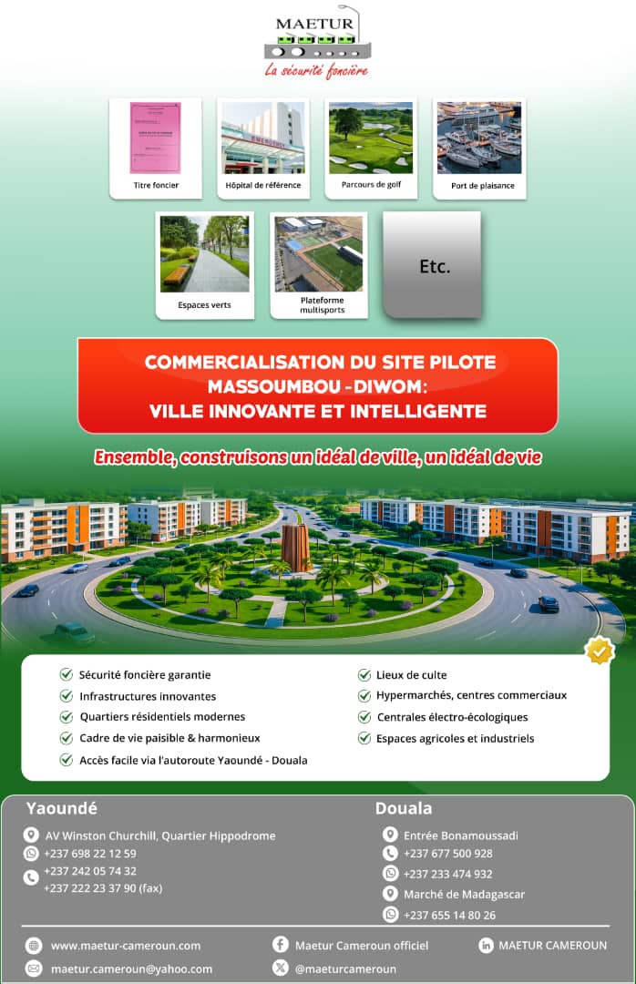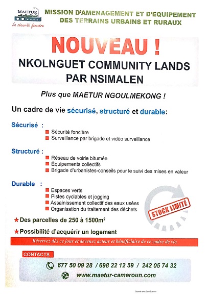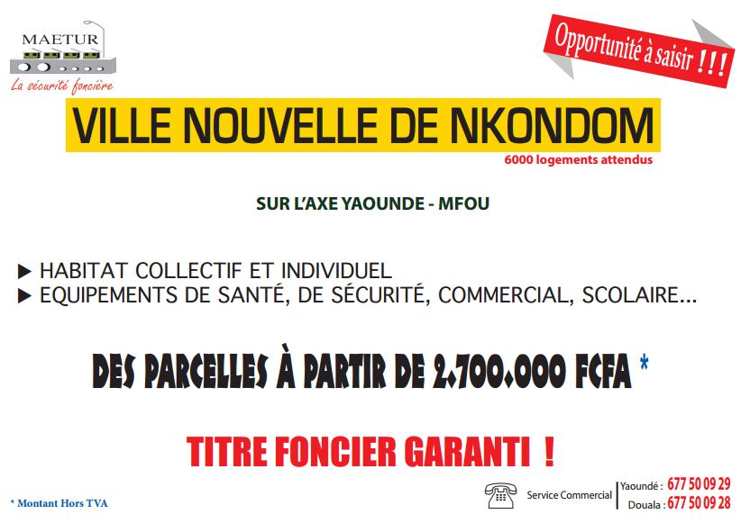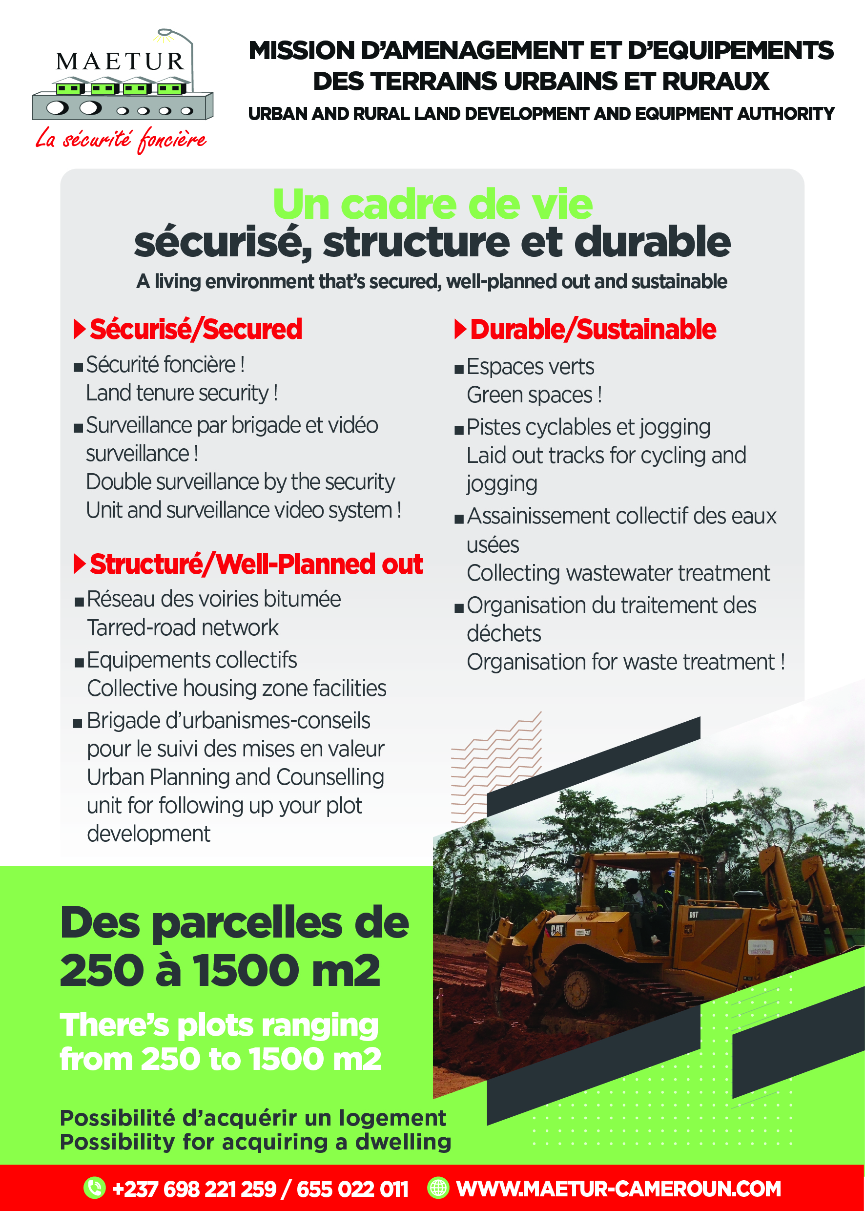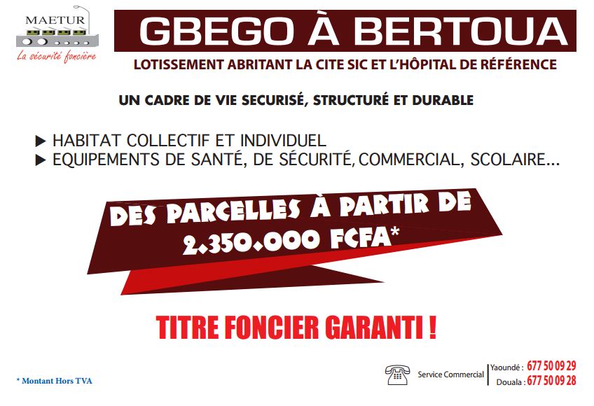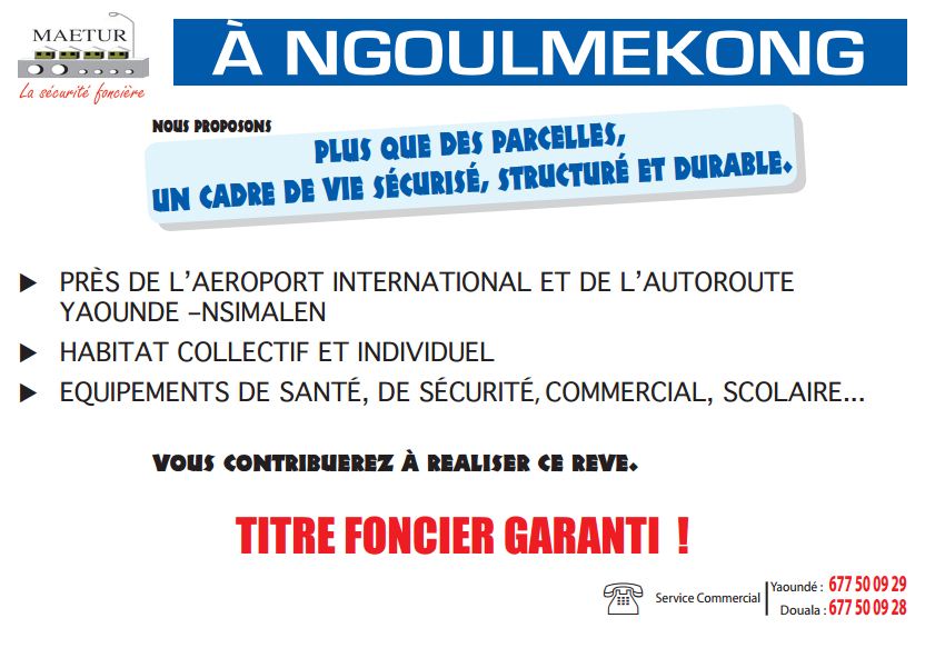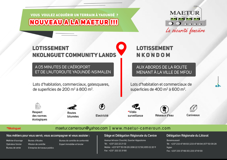 Description : Le lotissement dénommé « MAETUR OLEMBE » est situé au quartier OLEMBE, à l´entrée Nord de la ville de Yaoundé, dans l´Arrondissement de Yaoundé 1 ...